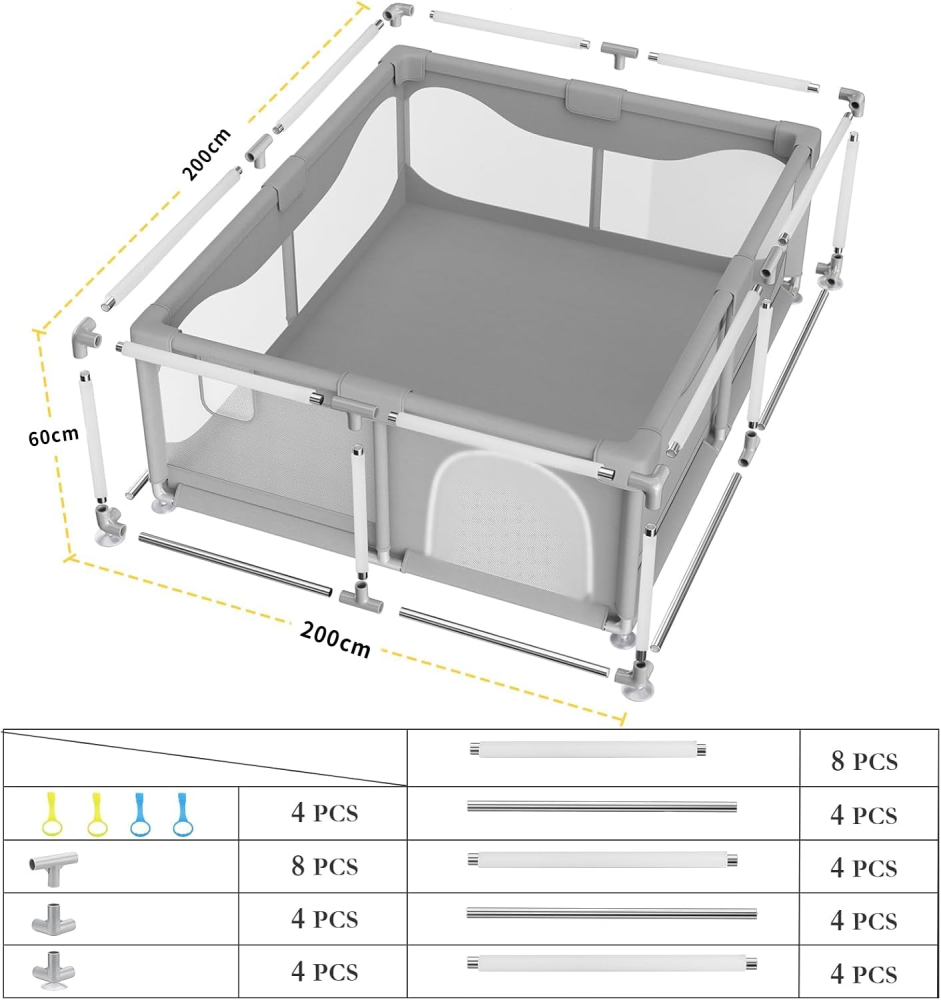 قفص اللعب للأطفال المصمم كجزء من ساحة اللعب يوفر بيئة آمنة وممتعة للرضع وحتى عمر المشي. مصنوع من أنابيب فولاذ مقاوم للصدأ وقماش أكسفورد شبكي، مع قاعدة مضادة للانزلاق وبوابة بسحاب لحماية الطفل. يتضمن حلقة كرة سلة وتعليق شبكي لكرة القدم، ويعد مركز نشاط داخلي/خارجي يوفر حرية الحركة والإبداع. يُجمّع بسهولة وينظف بمسح بسيط.
